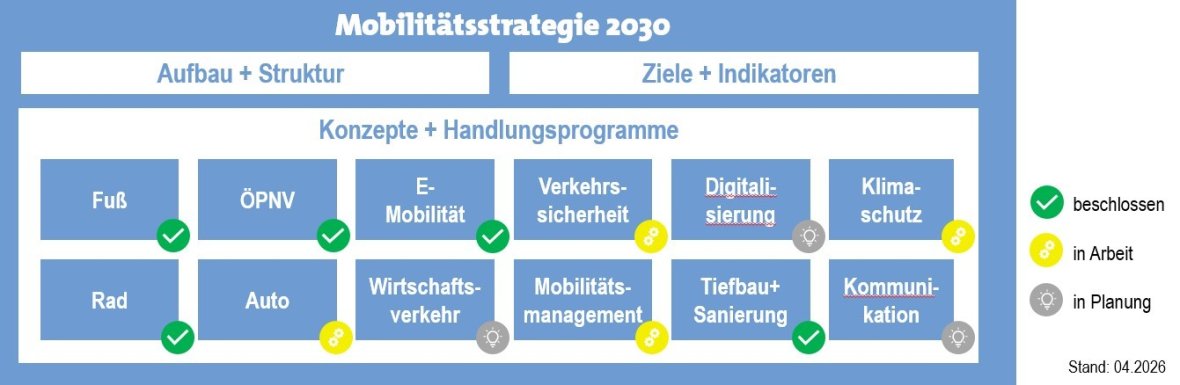 The cycling plan was adopted in 2022, and the electric mobility plan in 2025. The term "climate protection plan" refers to the mobility component of the integrated climate protection plan: The IKSK was adopted in 2024; a mobility action plan is currently being developed.