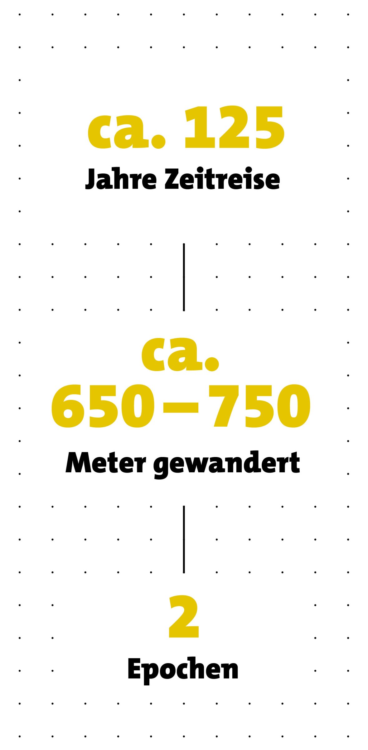 The monument has a time travel factor of approx. 125 years and has walked approx. 650-750 meters. Its design has features from two eras.