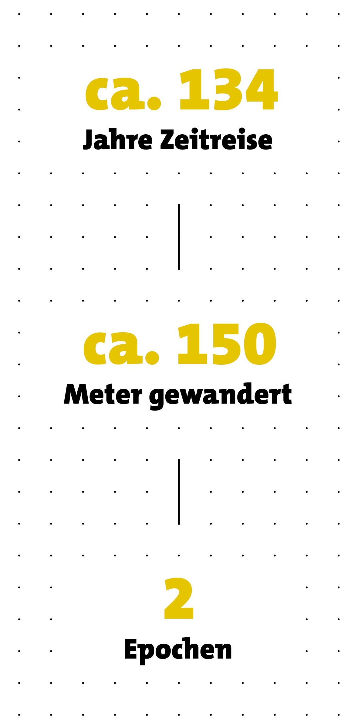 The monument has a time travel factor of approx. 134 years and has walked approx. 150 meters. Its design includes features from two eras.