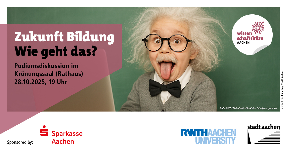 Professor Christian Timo Zenke, Department of Innovation and Transfer in Educational Systems at RWTH Aachen University, Professor Sven Kommer, Department of Didactics and Digital Education at RWTH Aachen University, Professor Dominik Farrenberg, Vice Dean of Social Pedagogy and Childhood Research at the Catholic University of Applied Sciences NRW and Ilona Orlikowski, Head of Schule am Fischmarkt, will be taking part in the panel discussion. They will bring different facets to the discussion, in which the audience will of course also be involved. "Uni im Rathaus" will be moderated by Marie Ludwig, editor at funk and WDR.
