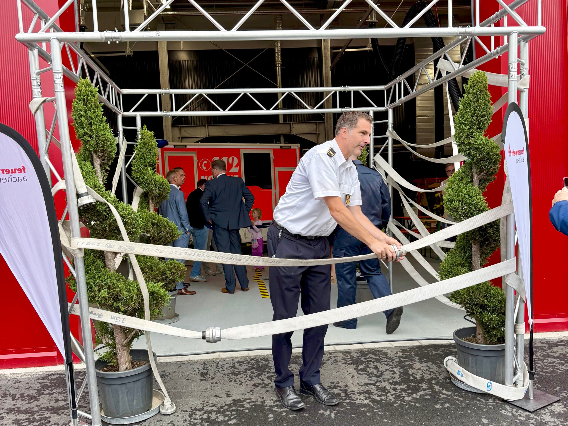 From next Friday, August 1, the colleagues of the Aachen professional fire department will also start their operations from the interim station on Adenauerallee. Before the first shift goes on duty on Friday, Fire Department Head Dr. Markus Kremer handed over the station last Sunday together with Andreas Bierfert, Head of the Fire and Rescue Service Department, Jens Hauschild, Head of Facility Management City of Aachen and Marco Gombert, FEPS company. Numerous local residents accepted the fire department's invitation and came to see the station.