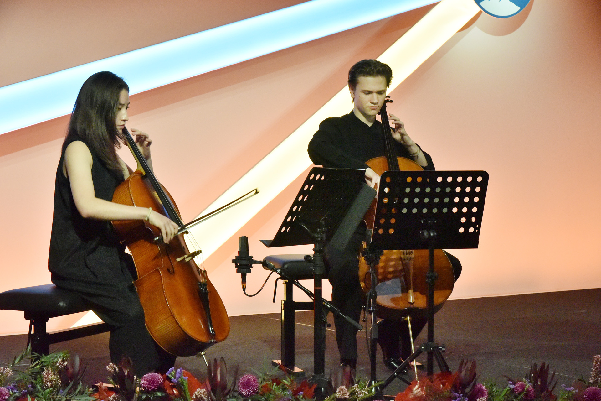 The four-course menu for this year's coronation banquet once again came from the kitchen of Dorn Catering & Events. A classic menu with meat and fish was served, as well as a vegetarian menu. As always, the coronation wine came from the Pro-Idee wine cellar. However, the coronation banquet is not only known for its culinary delights in an extraordinary ambience, but also for its first-class entertainment program. As usual, it was performed at the very highest level by prizewinners of the German Foundation for Musical Life - this year by Clara Yuna Friedensburg and Arne Zeller (both violoncello), who performed works by Joseph Haydn, Julius Klengel and Jean-Baptiste Barrière.
