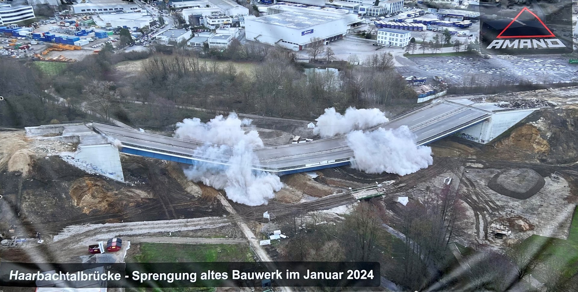 The existing bridge, built in 1956, had to be demolished on January 30, 2024 due to serious damage. On the same day, Autobahn GmbH began the replacement construction, which was completed at the beginning of September 2025. At the same time as the Haarbachtal bridge was being replaced, the smaller "Auf der Hüls" bridge in the immediate vicinity on the A544 route, which was also damaged, was also rebuilt. At times, around 120 employees were working on the new Haarbachtal bridge at the same time. Remaining landscaping work, such as the renaturation of the Haarbach stream, will be completed in spring 2026.