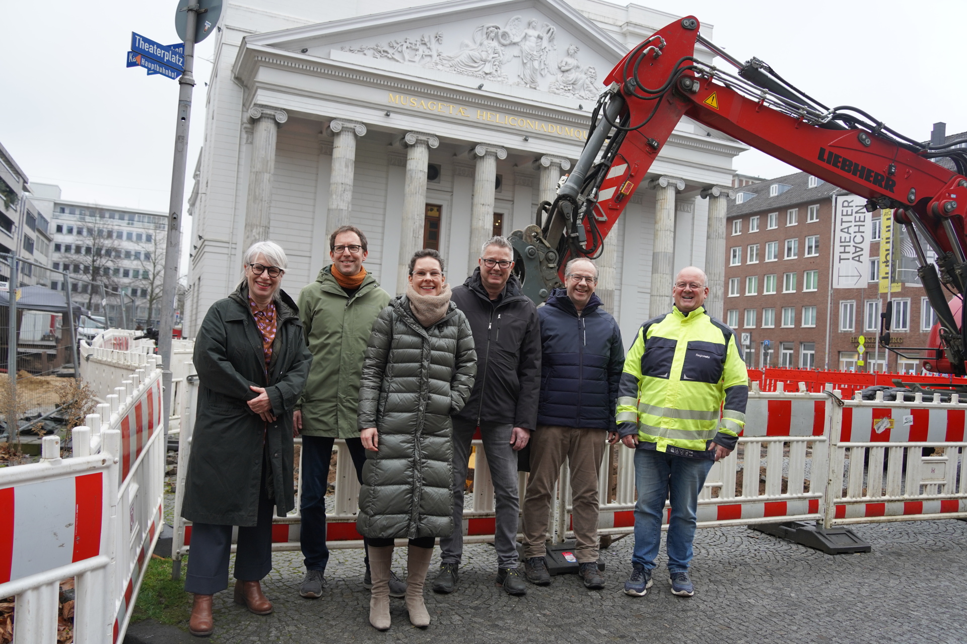 A special project in the major Theaterplatz redesign project has also been launched recently: the installation of an extinguishing water tank for the theater. This is necessary to ensure future-proof fire protection for Aachen's cultural center. The municipal building management department is responsible for this construction project. Head of department Robert Schmidt explains: "We have taken the opportunity to significantly improve the supply of extinguishing water to the theater. For this purpose, an extinguishing water storage tank with a volume of 100,000 liters of water and a redundant technical control center will be installed underground in the theater forecourt in order to supply the deluge extinguishing system, sprinkler system and wall hydrants with a safe and stable supply of extinguishing water in the event of an incident." The explosive ordnance investigations will begin in the coming days, after which the civil engineering work will be carried out with archaeological support.