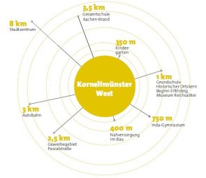 Avec le développement de la zone résidentielle de Kornelimünster West, la ville d'Aix-la-Chapelle a pour objectif de proposer un logement adapté aux familles avec enfants qui souhaitent construire. Le développement prévu consiste en un mélange de maisons individuelles, de maisons jumelées et de groupes de maisons, ce qui devrait permettre de répondre aux différents besoins et souhaits de logement des futurs habitants.