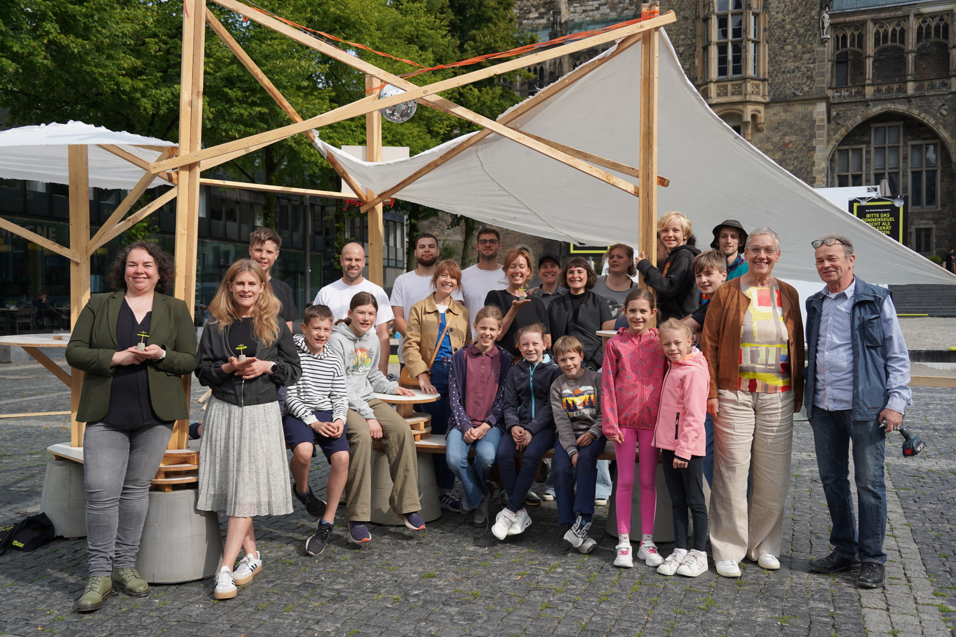 Le grand bac à sable d'Archimède sur le Katschhof fait désormais partie intégrante du calendrier estival d'Aix-la-Chapelle et attire d'innombrables personnes. Et comme le bac à sable pour l'été, l'atelier Archimède fait partie du bac à sable dans le cadre des jeux de vacances de la ville d'Aix-la-Chapelle. Cette année, le bac à sable fête déjà son dixième anniversaire, il est plus grand et construit plus longtemps. "Cela fait dix ans que je participe avec grand plaisir - et chaque année, le bac à sable d'Archimède m'enthousiasme à nouveau ! Ici, au milieu de notre ville, un lieu plein de créativité, de rencontres et de bonne humeur estivale est créé. Que ce soit les enfants qui creusent ou les jeunes qui construisent, le Katschhof devient une scène pour la communauté et l'inventivité. Ce projet montre comment la ville, la science, la culture et le jeu se réunissent de la plus belle des manières", explique Sibylle Keupen, qui a accompagné le projet pendant les premières années en tant que directrice de la Bleiberger Fabrik et plus tard en tant que maire.