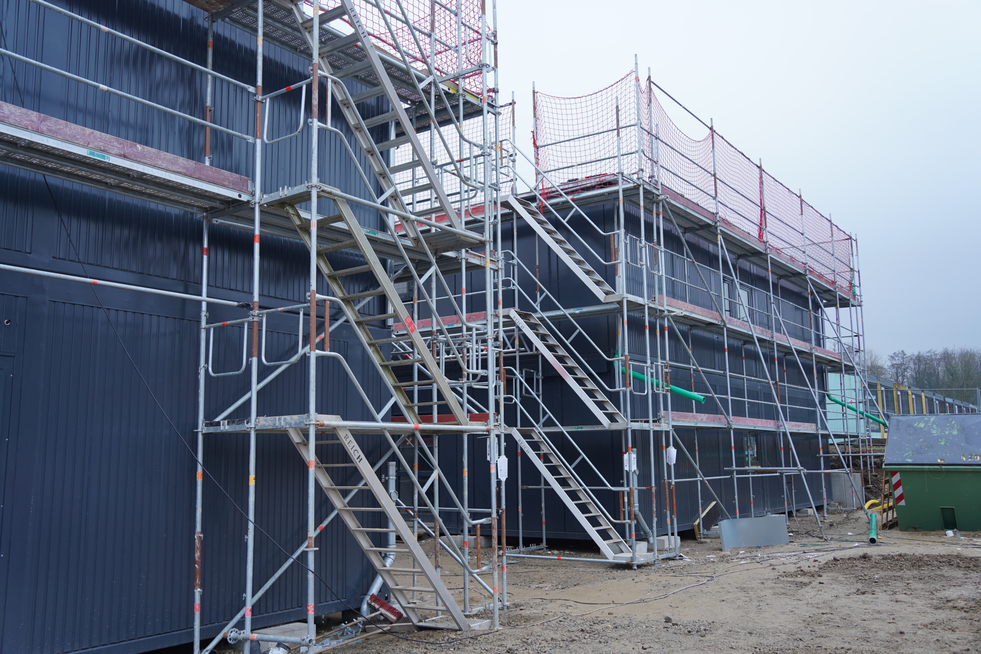 La construction du conteneur grandit à la vitesse de l'éclair : La construction de la garde intérimaire pour les pompiers d'Aix-la-Chapelle avance rapidement, pour le plus grand plaisir de tous les participants. Depuis peu, les installations de conteneurs à deux étages se trouvent sur le terrain à côté de l'ancien terrain de sport Heidbendenstraße / Adenauerallee. Ils abriteront à l'avenir les salles de repos ainsi que les salles sociales, de sport et de formation. Le hangar à véhicules en construction légère avec les locaux annexes et techniques nécessaires sera bientôt construit en amont. Si tout se passe comme prévu, la garde intérimaire devrait être opérationnelle en août 2025.