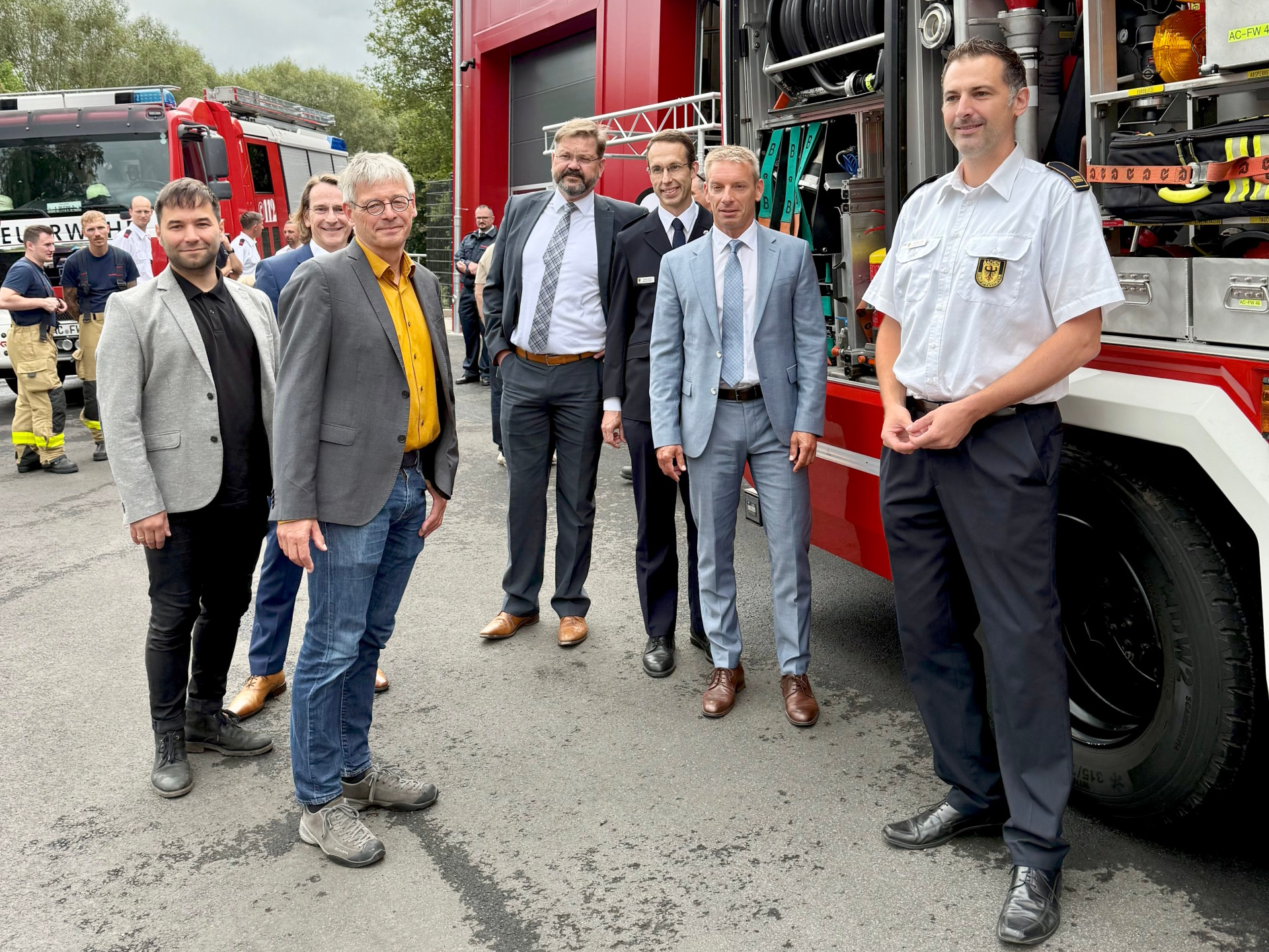 A partir de vendredi prochain, 1er août, les collègues des pompiers professionnels d'Aix-la-Chapelle commenceront également leurs interventions à partir du poste de garde intérimaire de la Adenauerallee. Avant que la première équipe ne prenne son service vendredi, le Dr Markus Kremer, chef des pompiers, Andreas Bierfert, chef du département des pompiers et des services de secours, Jens Hauschild, chef d'exploitation de la gestion des bâtiments de la ville d'Aix-la-Chapelle et Marco Gombert, de la société FEPS, ont remis la garde dimanche dernier. De nombreux habitants* ont répondu à l'invitation des pompiers et ont visité la caserne.