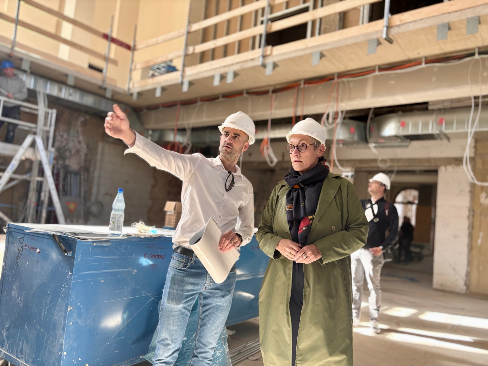 En 2026, Kristina Wulf et son équipe prendront le relais. La directrice de l'Eurogress se réjouit de ce nouveau lieu attractif pour Aix-la-Chapelle. De nombreuses idées et demandes sont déjà dans le tiroir. Dès le début de l'année 2026, l'équipe de l'Eurogress s'occupera de l'aménagement spécifique à l'événement, se familiarisera avec le bâtiment et la technique et jouera les différents processus qui accompagnent un événement. "Plus la date d'achèvement se rapproche, plus nous sommes impatients. C'est justement à ce stade, où il se passe tant de choses et où il y a tant de choses à voir en ce qui concerne l'aménagement intérieur, que toute l'équipe de l'Eurogress a très envie de prendre possession de ce magnifique bâtiment", a déclaré Kristina Wulf lors de la visite du chantier.