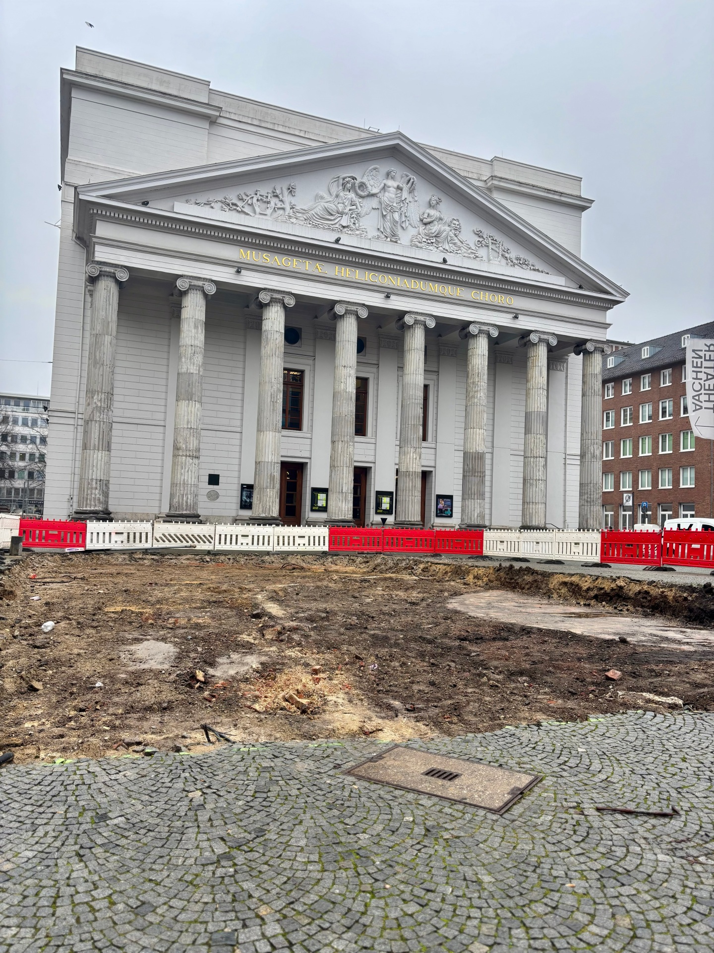Un projet particulier dans le grand projet de réaménagement de la place du théâtre a également été lancé ces jours-ci : l'installation d'un réservoir d'eau à incendie pour le théâtre. Celui-ci est nécessaire pour garantir une protection incendie durable pour le centre culturel d'Aix-la-Chapelle. La gestion des bâtiments de la ville est responsable de cette construction. Le chef de service Robert Schmidt explique : "Nous avons profité de l'occasion pour améliorer considérablement l'approvisionnement du théâtre en eau d'extinction. Pour ce faire, un réservoir d'eau d'extinction d'un volume de 100 000 litres d'eau et une centrale technique redondante seront installés sous terre dans l'esplanade du théâtre afin d'alimenter de manière sûre et stable en eau d'extinction le système d'extinction par aspersion, le système de gicleurs et les bouches d'incendie murales en cas d'incident". Les recherches d'engins explosifs débuteront dans les prochains jours, puis le génie civil sera réalisé avec le suivi archéologique.