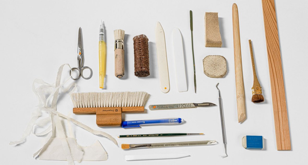 Individuele objecten worden gerestaureerd, bijvoorbeeld voor tentoonstellingen in de musea van Aken of op verzoek van gebruikers. Hiervoor worden alleen reversibele materialen gebruikt, zoals Japans papier en pasta. Het doel van een restauratie is zowel de bruikbaarheid van een object te herstellen als zoveel mogelijk originele materialen te behouden.