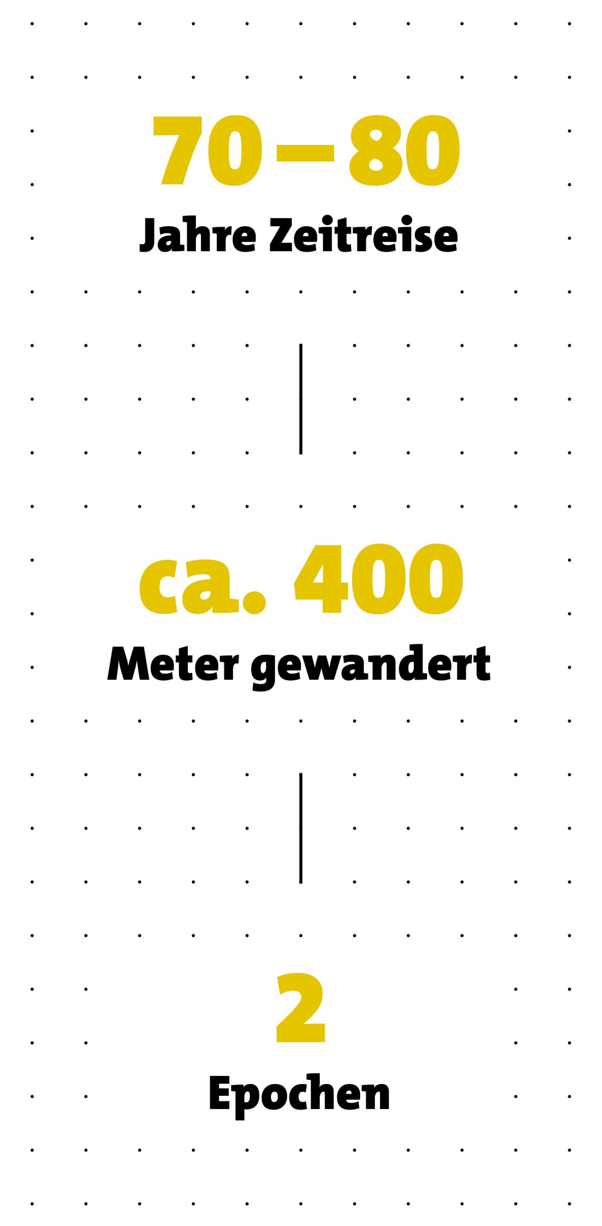 Het monument heeft een tijdreisfactor van ongeveer 70-80 jaar en heeft ongeveer 400 meter afgelegd. Het ontwerp bevat elementen uit twee tijdperken.