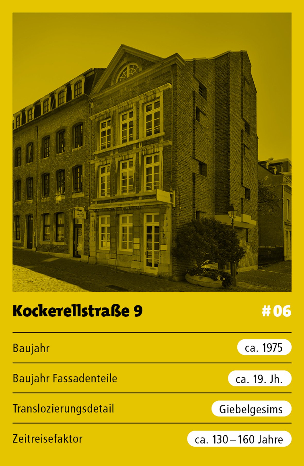 De volledig verplaatste gevel van het gebouw aan de Peterstraße 47 tegenover de Kockerellstraße werd herbouwd met slechts een paar wijzigingen aan de basis. Omdat het eigenlijk een rijtjeshuisgevel was met andere gevels die aan weerszijden met elkaar verbonden waren, moest er een aantrekkelijke oplossing worden gevonden voor de nieuwe constructie als hoekgebouw. Daartoe werd de lijstgevel kroonlijst iets om de hoek getrokken en de bakstenen muur iets verbreed, waardoor de gevel een lichte asymmetrie kreeg.