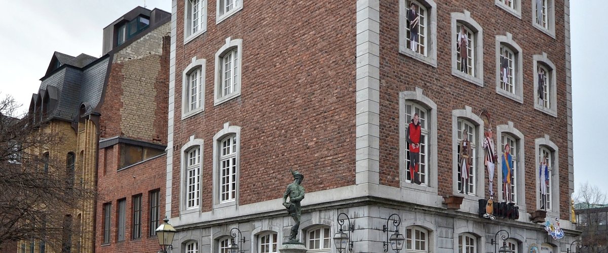 De gevel van het gesloopte gebouw aan de Jakobstraße 120, het zogenaamde Schützenhof, werd gebruikt voor het nieuwe gebouw. De sloop ervan was al gepland in 1941 als onderdeel van de planning van de transportroute, maar werd pas na de oorlog uitgevoerd. De geborgen arduinen muren waren echter niet voldoende om de drie nieuwe gevels te bekleden. Er moesten extra muren worden toegevoegd uit de voorraden van de gemeentewerf. Net als bij het vorige gebouw staat er een Mariabeeld, ontworpen door de kunstenaar Klaus Iserlohe, in een nis boven de kroonlijst in de noordwestelijke hoek.