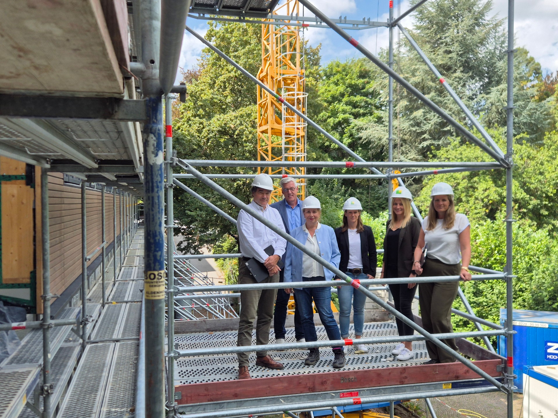 Het Couven-Gymnasium aan de Lütticher Straße vlakbij het stadscentrum wordt ook uitgebreid als onderdeel van de G8/G9-uitbreiding. Gebouwvleugel "D" uit 1999 wordt van voorjaar 2024 tot voorjaar 2026 verbouwd om vanaf zomer 2026 meer leerlingen te kunnen huisvesten. Op de eerste verdieping werd een 1,50 meter brede strook plat dak afgebroken en opnieuw opgebouwd om de klaslokalen uit te breiden. Op de eerste verdieping werd nieuw ruimtevolume gecreëerd na de sloop van een groen plat dak. Volgens Elke Bechlenberg-Bleckmann, Bouwmanagement van de stad Aken en projectmanager voor de Couven, ligt het project goed op schema. Ook hier ligt de nadruk op hout: het bouwmateriaal moet aan de binnenkant gedeeltelijk zichtbaar blijven en het nieuwe deel van de vleugel krijgt aan de buitenkant een houten gevel - naast de grote raamvlakken, waardoor de gesloten gevel niet te volumineus lijkt. "Ik ben ook blij dat we bijna uitsluitend lokale bedrijven opdrachten hebben kunnen geven," zegt de projectmanager. Nabijheid maakt samenwerking vaak gemakkelijker. Ze heeft er alle vertrouwen in dat de huidige klassen al in februari of maart uit de containers op het schoolplein kunnen verhuizen. "Dit zijn geweldige containers, ze zijn perfect geïsoleerd. Lesgeven was voor de vakantie geen enkel probleem, zelfs niet in de extreme hitte," zegt schooldirecteur Michael Göbbels. Hij is tevreden over de samenwerking en de voortgang - ook al kon niet elke wens worden vervuld. Er zal ruimte zijn voor nog eens 150 jongeren - in totaal kunnen er dan ongeveer 1.300 leerlingen naar Couven. Na de verbouwing is er bijna 628 vierkante meter gewonnen. Er zal ook een fotovoltaïsch systeem op het dak worden geïnstalleerd en een deel van het dak zal opnieuw worden begroeid.