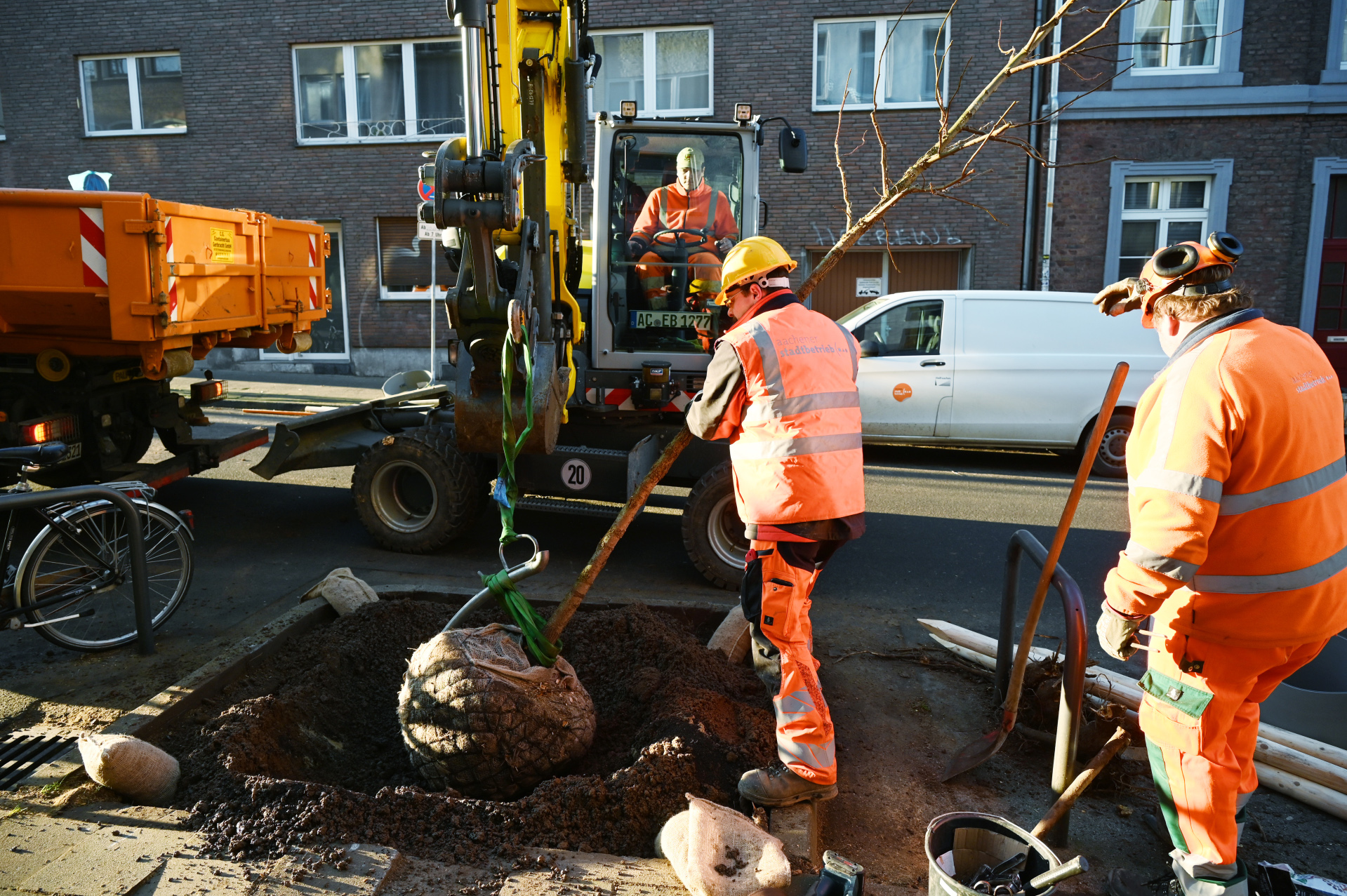 - Deze week plant het boomonderhoudsteam van de gemeentelijke diensten van Aken zes bomen in de Leydelstraße in een zogenaamde just-in-time maatregel.