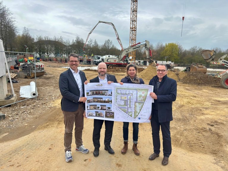 Stefan Frey AG begint met de realisatie van de nieuwe woonwijk "MY:BRAND" aan de Schagenstrasse 60, waar 69 door de overheid gesubsidieerde huurappartementen met een breed scala aan woonmogelijkheden en een geïntegreerd kinderdagverblijf voor zes groepen met ongeveer 1.093 vierkante meter vloeroppervlak zijn gepland. Tijdens een bezoek ter plaatse op donderdag (2 april) sprak burgemeester Dr. Michael Ziemons zijn tevredenheid uit over de voortgang van het grote woningbouwproject. "Dit project is een sterk voorbeeld van hoe we in Aken dringend benodigde woonruimte kunnen combineren met sociale infrastructuur en een duidelijke focus op gezinsvriendelijkheid. De geslaagde mix van gesubsidieerde woningen en een modern kinderdagverblijf creëert een omgeving waarin vooral gezinnen zich op lange termijn thuis kunnen voelen. Ik juich deze ontwikkeling uitdrukkelijk toe," zei Ziemons. Samen met het hoofd van de afdeling huisvesting van de stad, Thomas Hissel, en Christoph Kemperdick, hoofd van de afdeling vastgoedbeheer, wisselde Ziemons in Brand van gedachten met de vertegenwoordiger van de projectontwikkelaar, Corinna Kalscheuer.