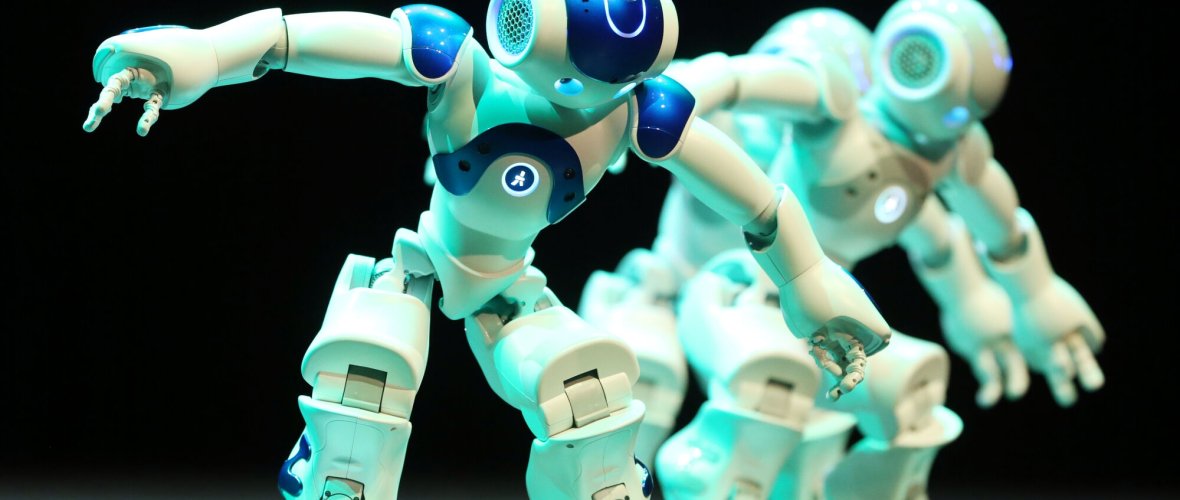 Zwei Roboter auf der Bühne der FutureLab-Gala 2016