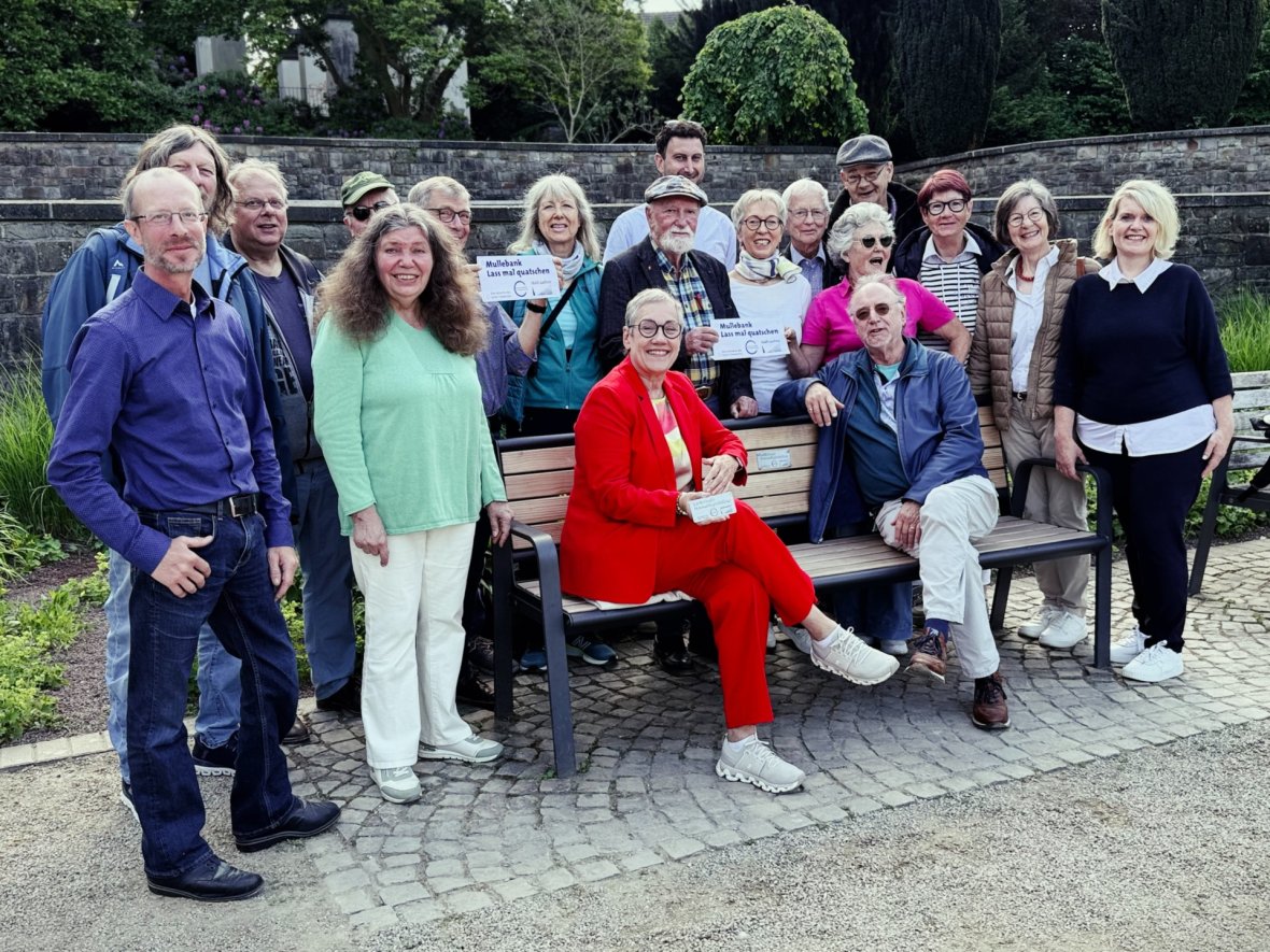 Am 19. Mai 2025 wurde dann die erste Bank direkt prominent besetzt. Mit Aachens Oberbürgermeisterin Sybille Keupen nahm die erste Aachener Seniorin auf einer Mullebank im Kaiser-Friedrich-Park am Hangeweiher Platz. Als amtierende Oberbürgermeisterin ist man eher nicht einsam, aber damit wurde zumindest ein kleiner Baustein gegen die Einsamkeit real.