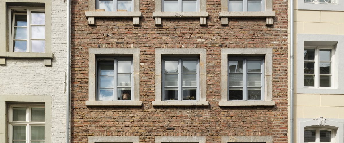 Die schlichte, historische Fassade wurde durch den Einbau von zweiflügeligen Fenstern ausgeschmückt.