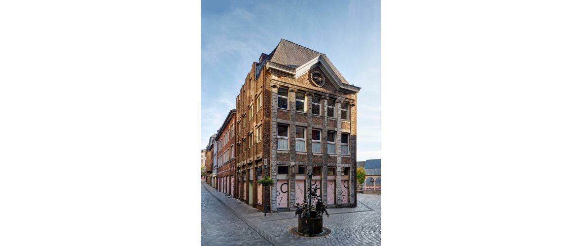 Das prominente Eckgebäude Hof Nr. 20 befindet sich in unmittelbarer Nähe zum Weltkulturerbe Aachener Dom. Dessen Umfeld gehört zu den ältesten Siedlungsbereichen Aachens und besticht bis heute durch seine Kleinteiligkeit, viele historische Gebäude und solche, die sich als Neubauten in den städtebaulichen Kontext gut einfügen. Das Haus Hof 20 ist dafür ein Paradebeispiel.