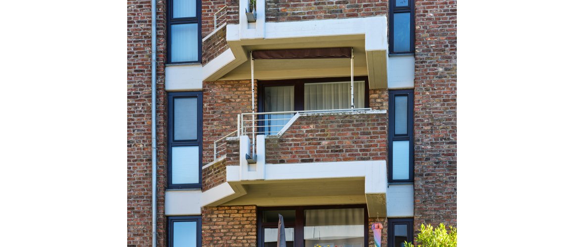 © Olaf RohlWährend die Fassaden der Häuser 17 und 19 historische Elemente zeigen, bilden die Rückseiten mit markanten, vorspringenden Betonelementen ein modernes Gegenbild.