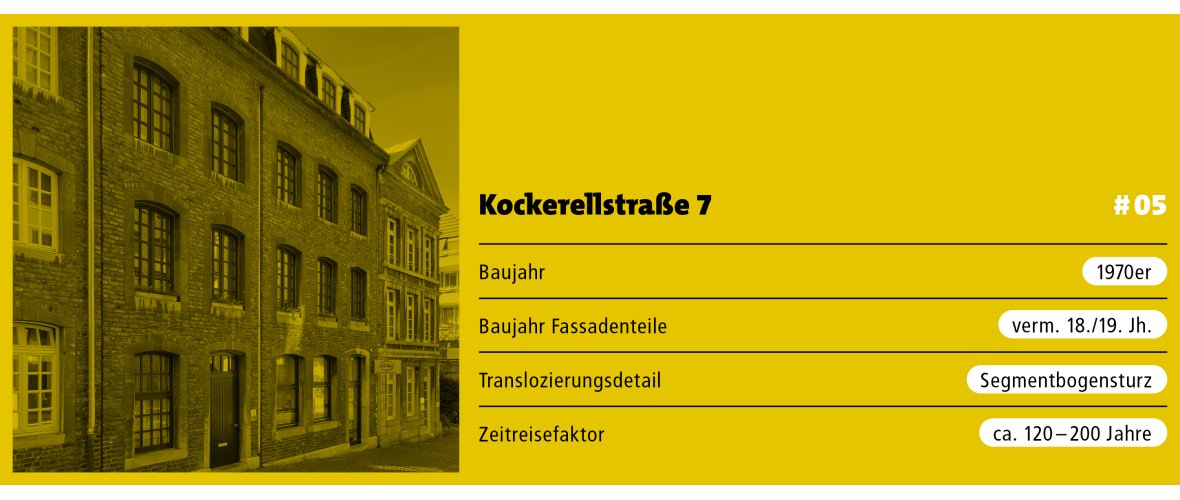 Die an dieser Stelle bis Anfang der 1970er Jahre stehenden drei Gebäude mit den Hausnummern 9, 11 und 13 stammten wohl aus dem 18. und 19. Jahrhundert, vermutlich mit älterem Kern. Anfang der 1970er Jahre wurden sie abgerissen, nicht zuletzt auch aufgrund erheblicher Bauschäden. Das heutige Gebäude Kockerellstraße 7 wurde anschließend auf den ehemaligen Grundstücken neu errichtet.