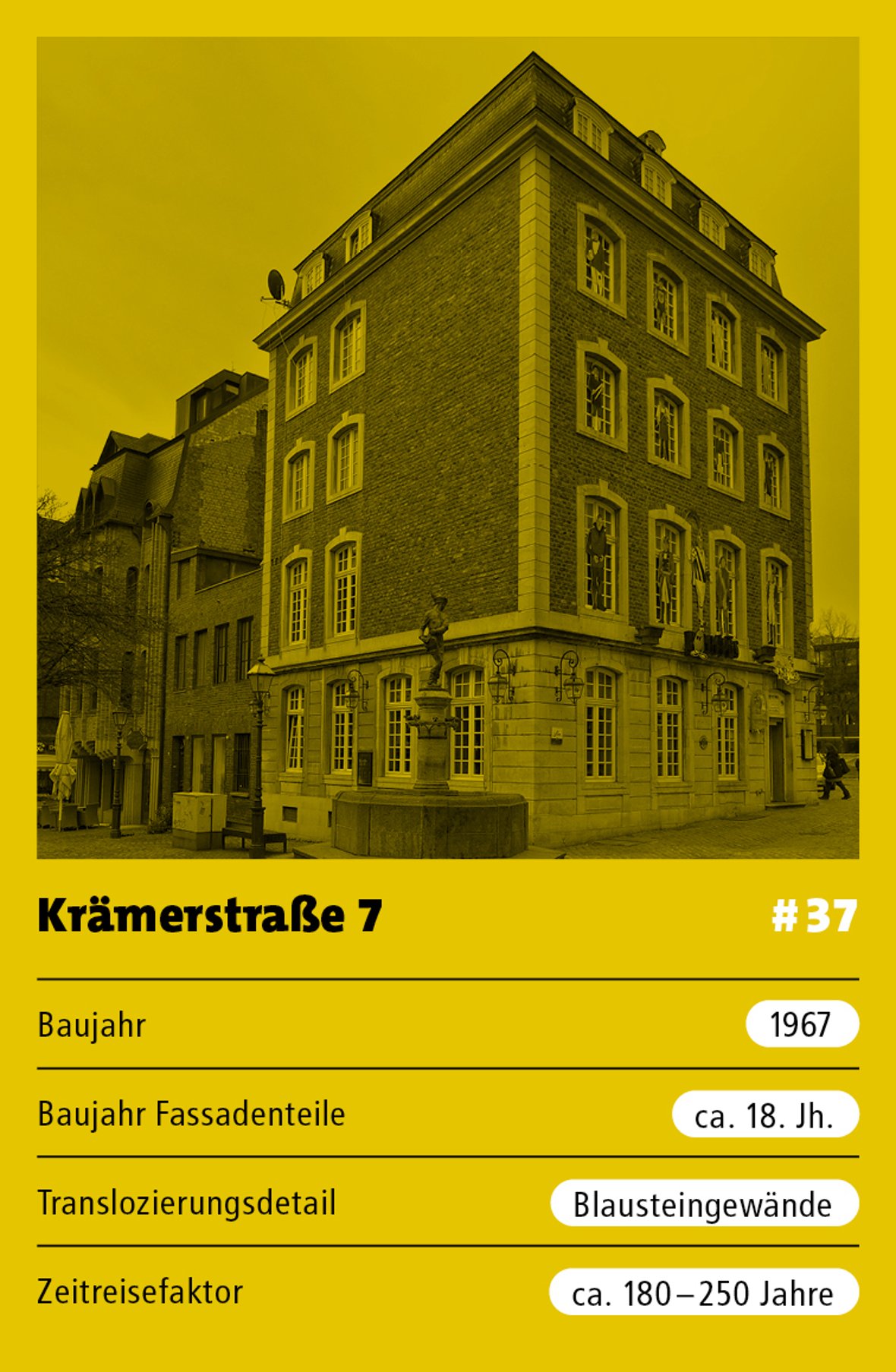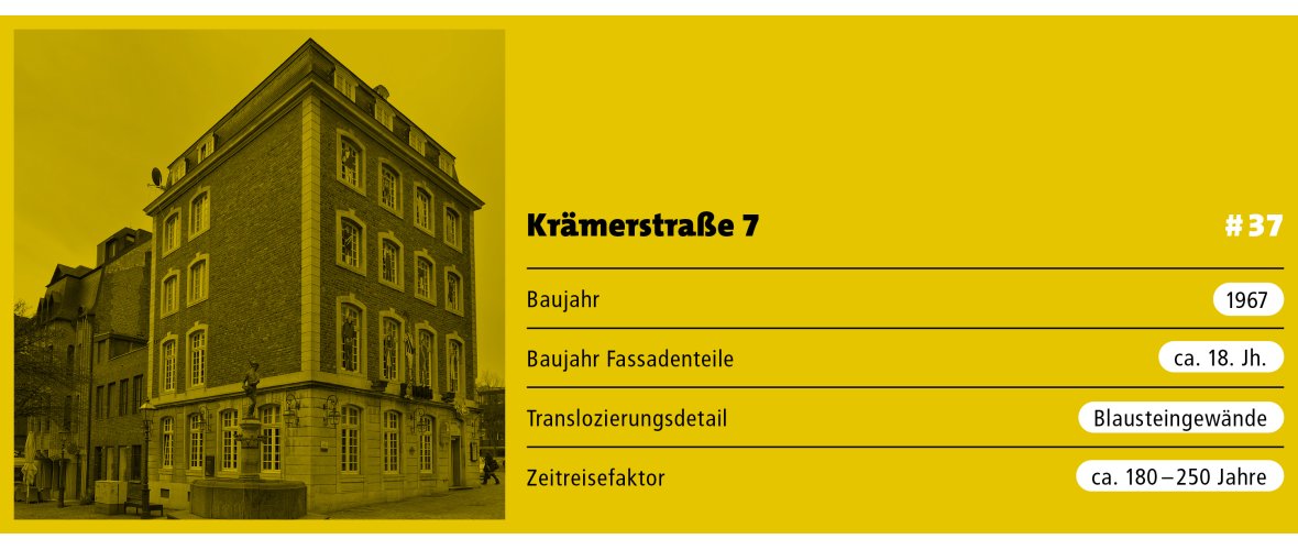 Das stattliche Haus Krämerstraße 7 markiert die Ecke zwischen Krämerstraße und Hühnermarkt. Für die Altstadt ist es mit seinen barocken Fassaden und Mansarddach eines der prägendsten Gebäude in unmittelbarer Nähe von Dom und Rathaus. Errichtet wurde es aber erst 1967.