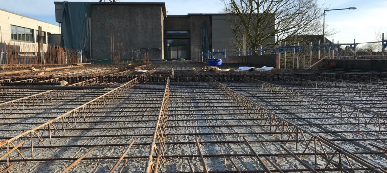 Der geplante Erweiterungsbau wird zwischen dem Gebäudetrakt 2 und der Sporthalle am Romerich errichtet.