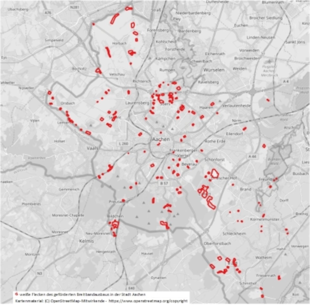 Die Stadt Aachen verfügt bereits jetzt über eine im bundesweiten Vergleich gute Versorgung mit zeitgemäßen Internetanschlüssen. Nichtsdestotrotz gibt es gerade in den Randbereichen des Stadtgebietes Haushalte mit unzureichender oder gar keiner Versorgung mit kabelgebundenen Breitbandanschlüssen.