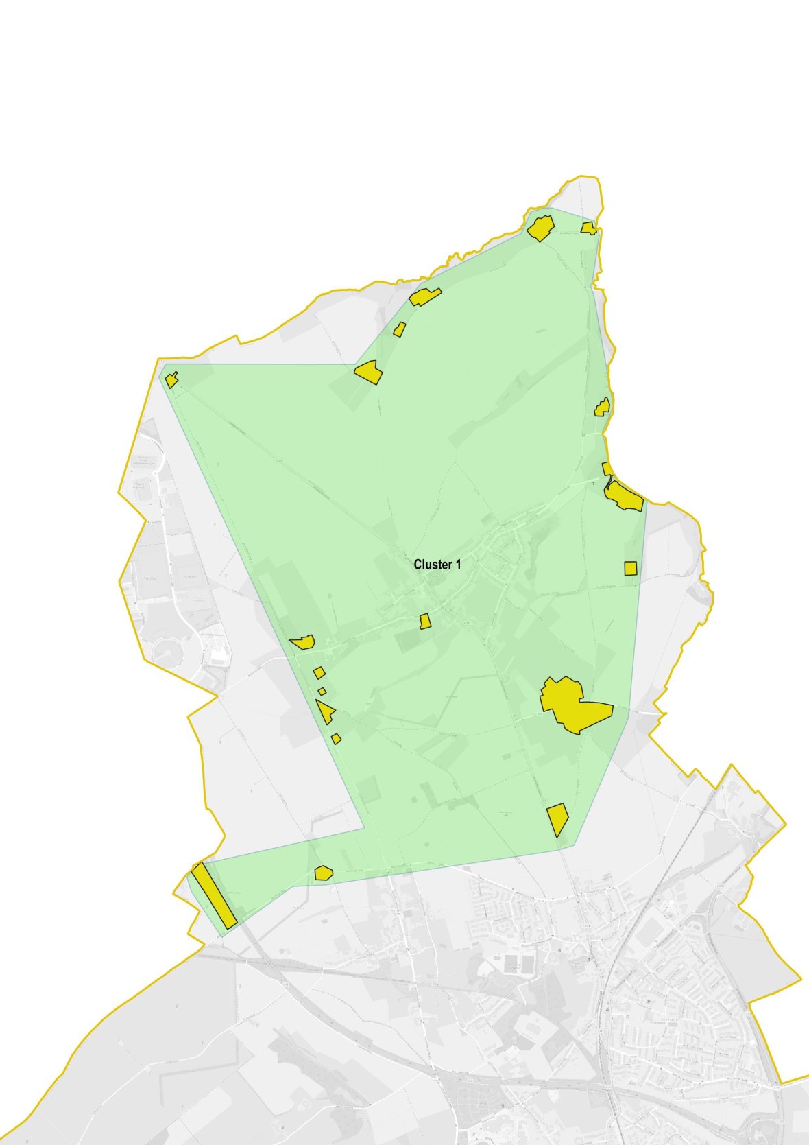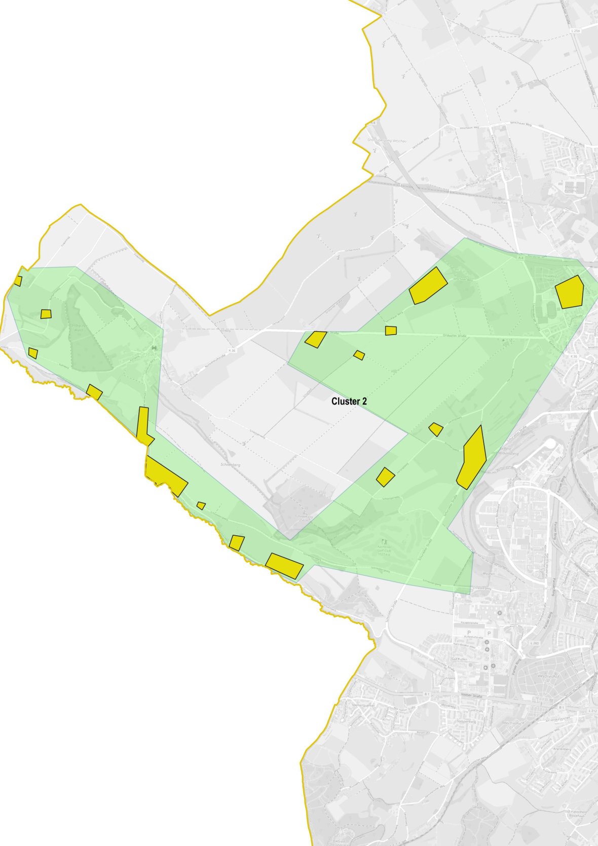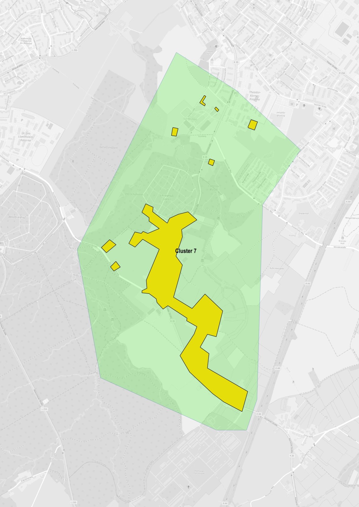 Gelb: Bereiche mit erstellten Glasfaser-EndkundenanschlüssenFertiggestellter Glasfaserausbau im Süd-Osten Aachens – Cluster 7 / 31.12.2022
